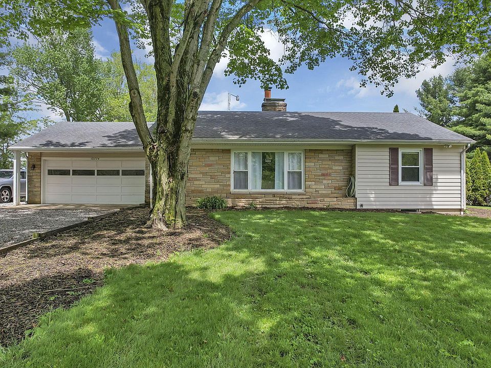 Welcome to your own private retreat! Located on 1.02 acres of beautifully landscaped land with mature trees, this charming 4-bedroom, 2-full bath ranch offers comfort, functionality, and room to enjoy the outdoors. The inviting main level offers an updated kitchen with large island, quartz countertops, deep farmhouse sink, ample cabinet storage & pantry. Original hardwood flooring throughout, front family room with wood burning fireplace, 3 spacious bedrooms & full hall bath. 1st floor laundry/mudroom leads to the backyard. Finished lower level provides an extra 736 square feet of living space with a gas log fireplace, perfect for a second living area, game room or home theater. 4th bedroom with full bath & tiled walk-in shower. Attached oversized 2 car garage with plenty of storage space. Rear patio & gazebo overlooks the spacious backyard with above ground pool, 20' x 33' detached building garage/workshop/office finished inside with electric. Fenced-in pasture area for livestock & garden area. Recent updates: 2015 new roof, HVAC 2019, dual sump pump 2020, water purification system & Radon mitigation. One year home warranty in place for the new owner.