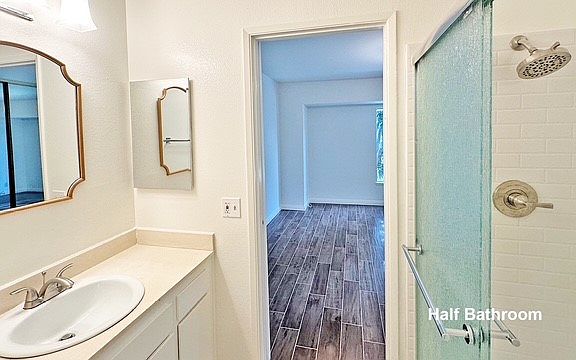 Newly Renovated Condo from top to bottom Hardwood Flooring Upstairs and New Tile Downstairs Located next to the beautiful Mile Square Park in Fountain Valley Bedrooms: New modern light fixtures, Hardwood Flooring, Large windows with natural lighting. Kitchen: New Stove, New Faucet and Cabinets, Large Pantry, Direct access to back yard area and garage Bathroom: The large bathroom (upstairs) has a new sliding barn door connecting to the Master bedroom. (downstairs) bathroom is a half bath with washer and dryer space Laundry: Washer and dryer hookups located downstairs 2 Car Garage Gated Enterance On-site Pool Central Heating System Brand new paint all throughout The Owner pays for the HOA fees. The tenant is in charge of all Utilities.