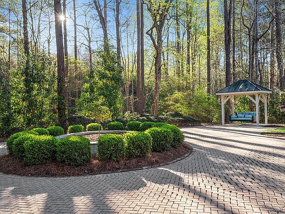 Rare opportunity to purchase in desirable Trego! Timeless elegance awaits in this custom executive estate situated on a secluded 2.4-acre lot in N Raleigh. Luxury starts at the oversized front doors opening to a graceful entry foyer & curved staircase. Main level living includes a chef's kitchen with large island, gas cooktop, SS appliances, sunny breakfast area, dramatic formal dining room, spacious family room, private main floor office & large bedroom suite w full bath. Lutron automation lighting throughout. Ascend to the second level where you'll find an oversized primary suite & luxe bath with huge walk-in closet, plus 2 large bedrooms & bonus room with refreshment bar. Third level has 5th bedroom/office with full bath, fitness/media/flex room & storage. The private backyard is a true sanctuary and includes a custom heated POOL & SPA with 2 waterfalls, tanning ledge/sun shelf, gas firepit area and extensive travertine hardscaping, complemented by a gorgeous screened porch & large stone fireplace. Updated landscaping, stonework, driveway, lighting, irrigation & fence complete the exterior. Your refuge awaits!