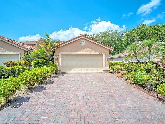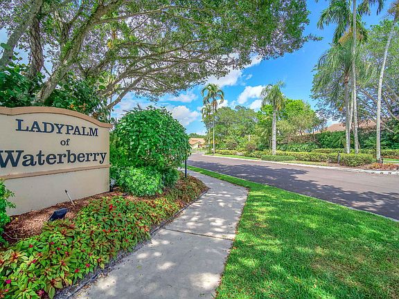 Lady Palm at Waterberry, a 55+ community in Boca Chase! Nestled on a cul-de-sac, this waterfront gem boasts an inviting open floor plan, perfect for entertaining. 2 bedrooms, 2 bathrooms + enclosed porch off 2nd bedroom could be used as a den/office, 2-car garage, with updated finished garage floor coating and screened in front porch. Indulge in the Florida lifestyle in your enclosed Florida room or sip your morning coffee on the peaceful backyard patio, overlooking the tranquil water views. Primary bathroom has a walk-in tub/separate shower. while the washer/dryer is inside. The clubhouse/pool is next door! Pool, tennis, fitness! Pet friendly, with restrictions. No lease first 2 years. Roof 2012. Close to restaurants, shopping and parks! **700+ credit score with Transunion required.