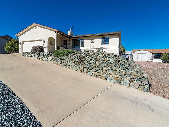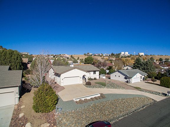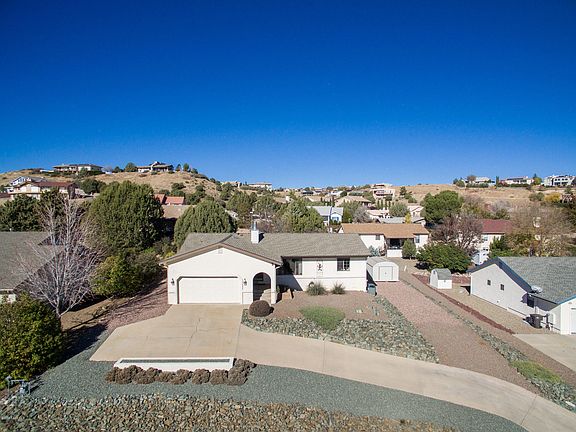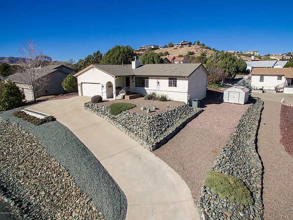 This beautiful Prescott Country Club home offers some of the best views of the Bradshaw Mountains and Mingus Mountain range that can be captured. The outside of the home offers manicured landscaping, shed, and side driveway perfect for visitors or temporary parking for your RV. The interior of the home is the definition of pride of ownership and provides 2 generous sized guest rooms with great natural light, a living room that gives off a cozy feel with a fireplace, and picture windows that look directly out to the golf course and the mountain range with an abundance of natural light. The kitchen has plenty of counter space, a garden window, lots of cabinets and some upgrades. The master bedroom offers great space, windows looking out to the backyard, cute vanity with powder area.