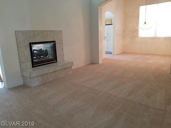 Single story 4 bedroom home with heated waterfall pool and spa in North Summerlin. Just got new carpet! Master bedroom offers large bathroom and a 7x12 walk in closet with shelves. Spacious family room adjoins kitchen and breakfast nook. Formal living room and dining room in front. Hunter Douglas blinds. Ceiling fans in all bedrooms. Floors are tile and carpet. Laundry room includes sink and storage. Extra storage and cabinets in garage.