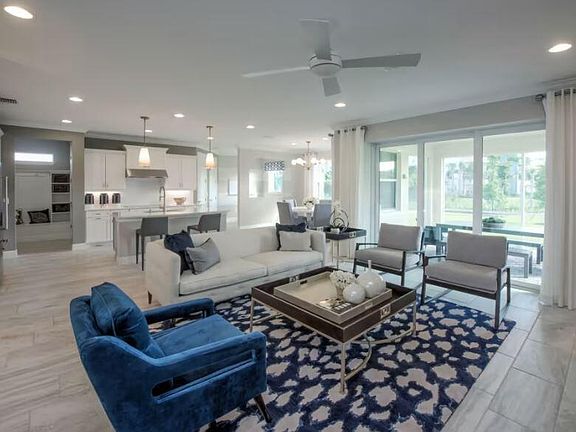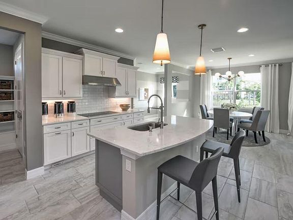 Move in March 2023! Our popular Riverwalk floor plan features open concept living with a large kitchen island great for entertaining. Enjoy added privacy of a lake view corner home site! Luxury upgrades include built-in gourmet Kitchen Aid gas appliances and 42'' white kitchen cabinets featuring hardware on all doors and drawers, pull out drawers, island paneling and a canopy hood. Quartz countertops are throughout the home, modern 12'' x 24'' inch grey porcelain tile throughout the first floor as well as in upstairs laundry and baths as well. Finishing details including non-textured walls with upgraded two tone paint and crown molding in all living areas. *** Interior photos are of model home **