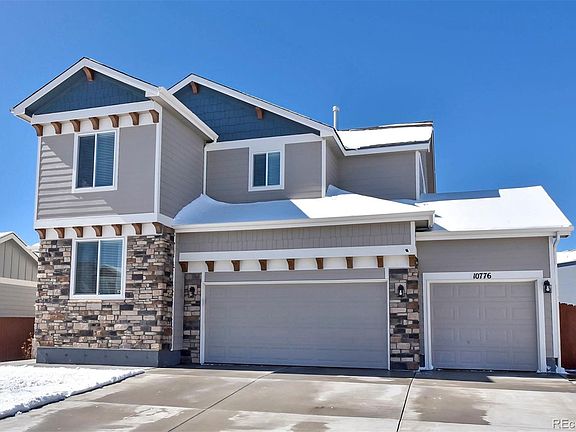 Gorgeous St Aubyn Jackson home that has a FOUR car garage, shows like a model and has room for expansion! From the moment that you enter through the covered entry with charming side porch you will feel home! Open concept living with walk out Great Room opening to Dining Room and Gourmet Kitchen w/enormous center island that easily seats six, slab granite counters, pantry, gas stove, stainless appliances, and deep double basin stainless sink. Spacious Master Retreat has sitting area, walk-in closet, dual sided gas fireplace which is shared with the 5pc Master Bath complete w/granite counters deep soaking tub, and walk-in shower. Three more large upstairs bedrooms and roomy loft for the perfect reading/study nook. Easy access upstairs laundry w/ built-ins, ceramic tile flooring and window. Office/Parlor off entry as well as Powder Room w/pedestal sink. Voluminous unfinished basement is plumbed for a bathroom and wet bar...so many options! RARE Finished FOUR car tandem garage! Fenced backyard has patio, raised flower beds, as well as path to Pergola w/2nd concrete patio and firepit for entertaining or just relaxing and enjoying Colorado life! Automatic sprinkler system, central air conditioning, 9' main level ceilings, Security System, handsome wood and iron railings. Very close to rec center. This is a stunning home!