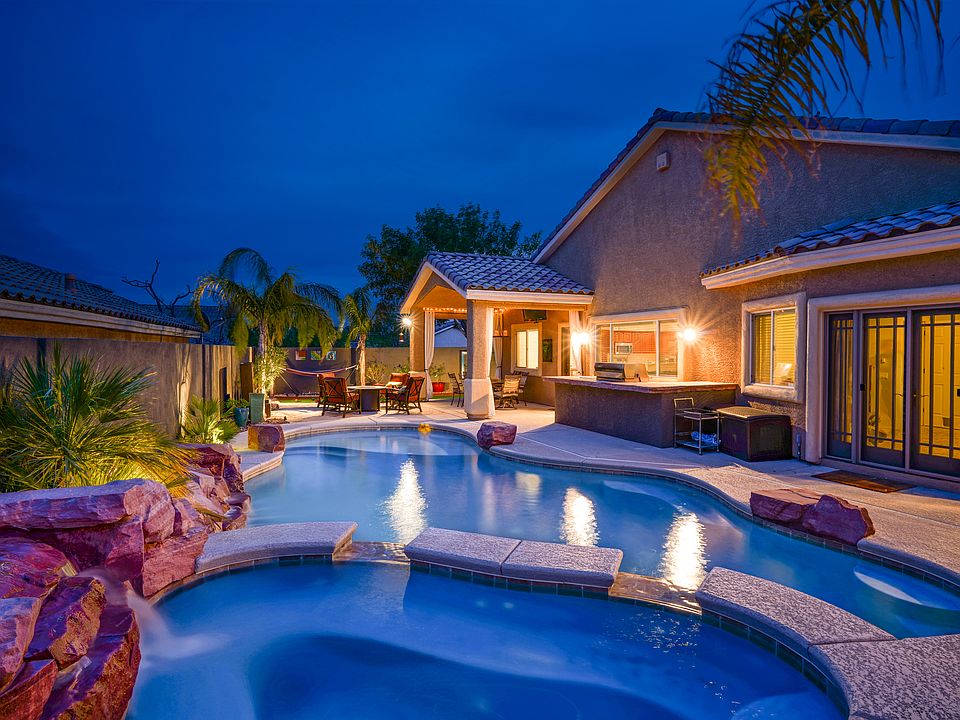 STUNNING 3 BEDROOM ONE STORY SUMMERLIN POOL HOME ON CORNER LOT! FULLY LOADED NEW PORCELAIN TILE,NEW CARPET, NEW PAINT, CUSTOM BASEBOARDS, NEW STAINLESS APPLIANCES, UPGRADED HARDWARE MASTER FEATURES NEW CARPET, WALK-IN CLOSET & FRENCH DOORS OPENING TO A DREAM BACKYARD W/ COVERED PATIO, OUTDOOR KITCHEN W/ FRIDGE & BUILT-IN BBQ, BOCCE BALL COURT, AUTO-TIMERS/MOTION LIGHTS, TANGERINE DREAM&CHARDONNAY VINES, SOLAR HEATED POOL/SPA. 3 CAR GARAGE!