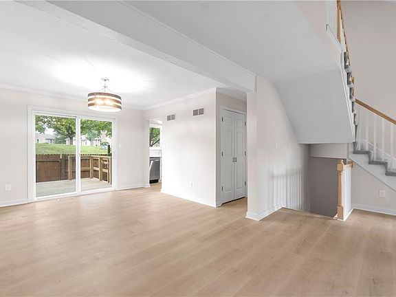 Newly renovated!! Every part of the interior of this wonderful townhome has been updated, from top to bottom. The main floor open concept living and dining area has a fireplace, all new LVP flooring and directly accesses the deck and fenced-in courtyard. The kitchen has freshly painted cabinets with new quartz countertop, tiled backsplash, plumbing and light fixture, ceramic tile floor and all new stainless steel appliances! A coat closet and half bath with new vanity, countertop and tile floor round out the first floor.