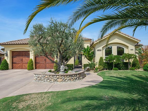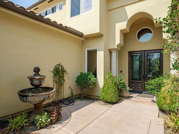 From the moment you step into the grand foyer of this beautiful turn-key home, you will be captivated by the Model Home feel of this magnificent home! Custom built by quality home builder Nachtigall, this Mediterranean showplace is attractively positioned on a 15.000 sq. ft. cul-de-sac lot in desirable Bellamontagna. Expect to be impressed as you approach the iron gate courtyard with fountain leading to the grand double door entry. Admire the gorgeous wood flooring, crown molding, many Restoration Hardware light fixtures, gourmet kitchen w/spacious center island, built-in GE Monogram refrigerator/freezer, wine cooler, 6 burner gas range & beautiful cabinetry. This functional floorplan allows you to relax downstairs in your spacious Master Suite w/fireplace, plus two additional bedrooms & baths ( one is an ensuite perfect for guests). Upstairs features one oversized bedroom/gamerm + another bedroom & one bath. Entertaining will be a joy in this fabulous Great Room w/ an expanse of windows w/ view of the lush, private & well manicured backyard complete with pool, summer kitchen, large grassy area & separate side yard. Spacious 3 car garage with apoxy floors, cabinets & teak doors.This highly desirable neighborhood of Northeast Fresno is within the boundaries of Clovis Unified School District's famed Fugman Elementary & Clovis North Educational Complex. Hop on the trail leading to Woodward Park for hours of recreation or have easy access to Friant Road to visit Millerton Lake!