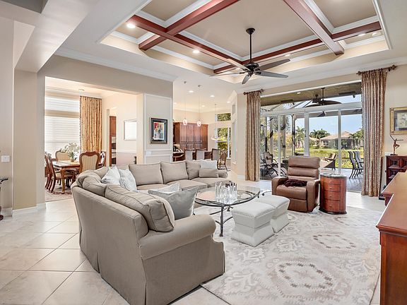 Beautifully designed and highly desired Julia model provides expansive rooms with plenty of room to entertain. This property is located on an exquisite, lake lot with oversized lanai adding to the spaciousness and open floor plan. Gourmet kitchen has upgraded cabinets, large pantry cabinets with pull out drawers. From the moment you enter the large great room you will notice the detailed mill work, custom window treatments and special touches .Primary suite has two walk-in closets and on-suite with dual sinks, soaking tub and separate shower. This is truly a gem and not to be missed.