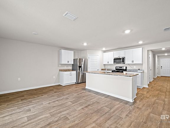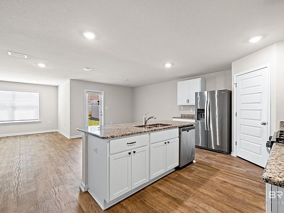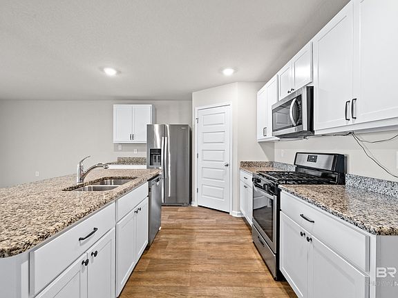 Fantastic buy in Jubilee Farms. This 4 bedroom 2 bath house has all the features and amenities that a new home in the neighborhood has to offer and it's in great shape. Just a couple of years old this home built in 2021 is a very well designed home and has a bunch of features. It comes with vinyl flooring through out, stainless appliances, granite countertops, LED flush mount lighting (no bulbs necessary) and was built to Fortified standards which is very helpful in keeping the insurance premiums affordable. The home is one of the Cali floorplans offered by DR Horton. It has open spaces, big bedrooms, double sinks in the primary bathroom with a separate tub and shower, a big kitchen with loads of storage space, a pantry and a eat in bar. Outside. you'll find mature landscaping and a nicely sized back yard. There is an outdoor covered porch and room for your pets. The neighborhood has one of the best amenity packages in the area. It has a huge pool area with common green space, big water slides and a club house. This neighborhood is great to ride the golf cart to the pool, walk miles on the sidewalks that meander through the neighborhood or go fishing in one of the many retention ponds. Convenient to everything in Daphne, Fairhope and central Baldwin county it's also only a few miles to I-10 and a quick drive to the beautiful beaches of Gulf Shores. House is super easy to tour and move in ready!! Buyer to verify all information during due diligence.