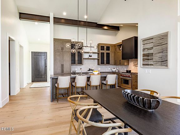 Located within the coveted Hidden Canyon development in picturesque Hideout, Utah, this stunning home was recently constructed to capture the panoramic views of the surrounding mountains and tranquil water. The thoughtful layout includes an open floor plan, vaulted ceilings and a contemporary aesthetic by esteemed design house Alder & Tweed who captured the perfect balance between luxury and function. The main level offers a seamless flow with a lovely dine in kitchen, an informal dining room and direct access into the great room and back deck allowing for great entertaining and ample room for relaxation. Accented by large windows and skylights, the impact of the surrounding views are extended throughout the home and illuminated by natural light. Tucked away from the main gathering areas lies a luxurious primary suite complete with a sleek en-suite, walk-in closet and convenient washer and dryer. The beautifully crafted floating staircase leads to the walkout lower level with additional bedrooms, a large family room, well-appointed wet bar as well as a large laundry facility and additional storage. The exterior is as refined and functional as the interior with a private drive, fresh landscaping and two covered decks that allow the living and dining spaces to seamlessly extend outdoors, into the solace that the surrounding lake and mountains provide. Just 10 minutes from the charming streets of Park City, Hideout Canyon is currently one of the most sought-after residential communities in the Park City area. Hideout Canyon offers a quiet escape from nearby cities with plentiful outdoor activities including Utah's best ski slopes, waterfront recreation, hiking, mountain biking and more. With easy access to nearby Salt Lake City and thriving international and private airports, this property is not only an amazing opportunity in Hideout Canyon, but truly offers Utah living at its finest.