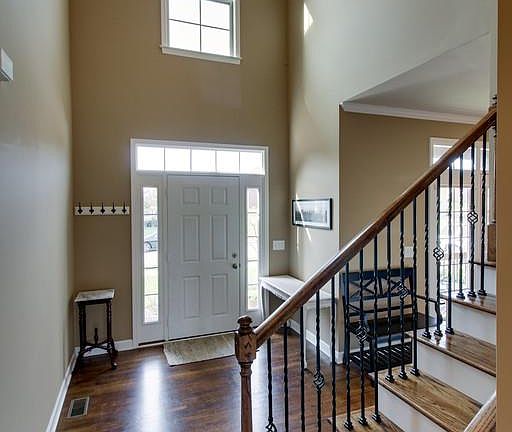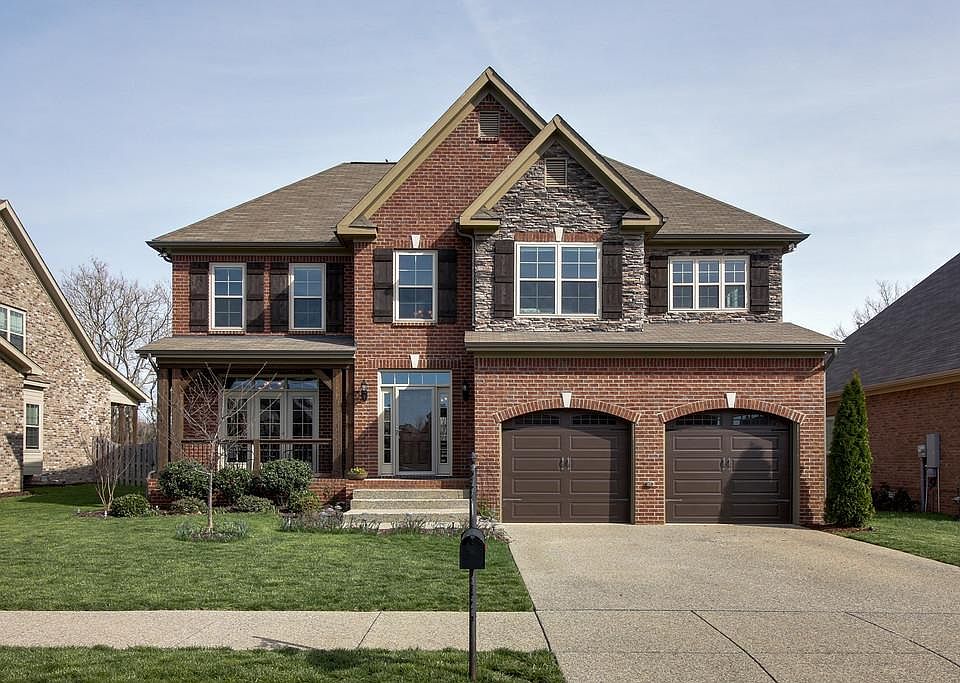 All Brick & Stone Home has several upgrades: Dark stained Hardwood Flrs on 1st, Coffered Fam Room Ceiling & Stone Fireplace/Cedar Mantel, Iron Staircase, Double Oven/Microwave combo, 5 Gas Cooktop, Maple Cabinetry, Granite Counters, yards from Com Pool.