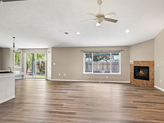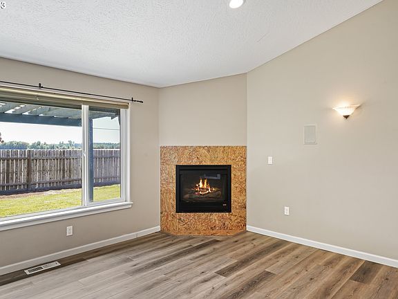 Located in a wonderful Harrisburg neighborhood, this roomy home is filled with natural light. Vaulted ceilings and open layout make for great living and entertaining space. In the winter gather around the gas fireplace and in summer enjoy a cold drink out on the covered patio with a view of the Coburg Hills. The fenced backyard has views of the surrounding farmland. Large primary bedroom has walk in closet and ensuite bath with jetted tub and dual sink vanity. Brand new high quality laminate flooring in main living areas and new carpet in primary and den. Easy stroll down to the nearby park. Laundry room with pantry and storage closet. Large den with French doors makes perfect home office or play room. Location allows for easy commute to Eugene and I5 access. **Seller credit up to $15,000 for updates or rate buy-down!**