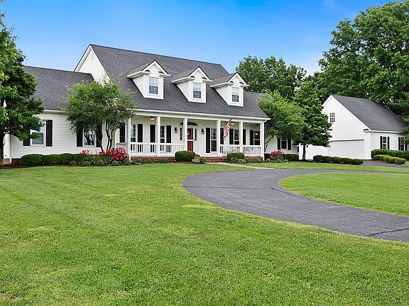 First time offered! Stunning 1.5 story on 5+/- acres, 4-plank fencing with a stocked pond, 5 garage bays. Features include 4300+ s.f. of finished space, 4 bedrooms, 3 full, 2 half baths, 1st floor master suite, covered front porch, formal dining room, hardwood floors, granite with travertine backsplash, stainless appliances, breakfast area, vaulted great room, sun room, spacious deck, 2 guest suites & loft area upstairs, over 360 SF of floored walk-in attic space, partially finished basement with additional bath and bedroom, 558 SF of unfinished storage in basement, 2-car attached garage & a 3 car detached garage plus an additional auxiliary garage. Original owner custom built home with numerous updates over the years including geothermal, 2 water heaters, windows, roof & more. Located at the Jessamine/Fayette County Line. Be sure to check out the virtual media and aerial views.
