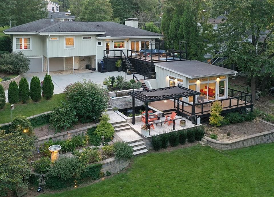 LAVISTA PARK Mid-Century full scale renovation includes separate carriage house/studio on .51 acre corner lot and rare 2 car garage. This open concept features 9' ceilings throughout and many other modern features that make this home exceptional. The kitchen features Verona gas range and vent hood, Viking wine fridge, KitchenAid fridge, warming drawer, walk-in pantry, island, quartz countertops, and glass backsplash. The primary bedroom suite features walk-in closet, dual vanities, heated floors in bath, separate shower, and soaking tub. A large deck off the back views the patio, amazing koi-pond/waterfall feature (which can be converted to plunge pool) and detached studio/carriage house. The studio features full bath and wrap around deck overlooking lush, professionally landscaped yard. Other features include double paned windows, four sides electric in-ground fence, and spray foam insulation. New tankless hot water heater - Navien 240A Recirculating Unit Tankless, Natural Gas installed February 2022. Walk to restaurants, shopping. Close to EMORY, CHOA, Buckhead, Midtown, I-85, GA-400, MARTA.