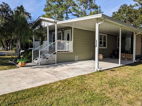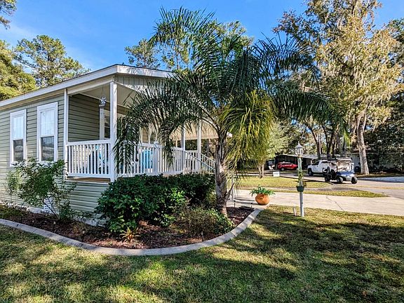 Welcome to this charming 2-bedroom, 2-bath singlewide home in a vibrant 55+ community. Built in 2018 and meticulously maintained, this home offers a perfect blend of comfort and convenience. Step onto the adorable front porch, ideal for morning coffee or evening chats with neighbors, and enjoy the ease of an extra-long carport that accommodates multiple vehicles. Inside, you'll find a beautifully designed kitchen with high ceilings and ample cabinetry, flowing into a cozy living space that feels both open and welcoming. The primary bedroom features an ensuite bath for added privacy, while both bedrooms offer generous closet space and soft carpeting. With central A/C, vinyl siding, and a shingle roof, this home is move-in ready and in excellent condition. Located in Clover Leaf Farms, residents enjoy a pet-friendly atmosphere and a wide array of amenities including indoor and outdoor heated pools, a hot tub, sauna, fitness center, library, billiards room, pickleball courts, and a bustling clubhouse with regular social events. Lot rent is $856/month and includes water, sewer, trash pickup, lawn care, and full access to community features. Whether you're looking to downsize or settle into a peaceful, active lifestyle, this home is a delightful find.