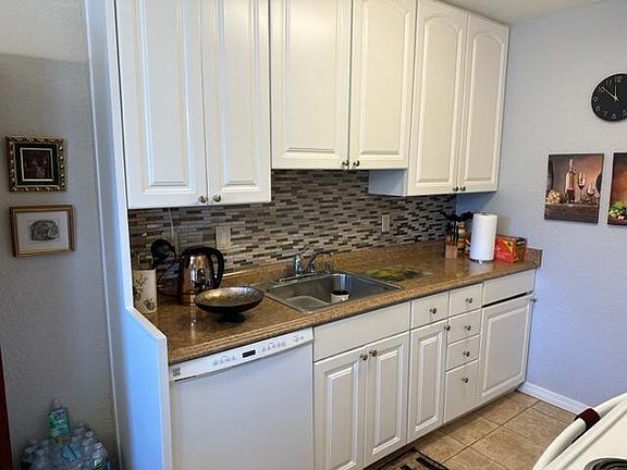 Immaculate. Ground floor. Renovated. Newer kitchen & backsplash. All tiled. Upgraded bathrooms. Popcorn removed from ceiling. Knockdown ceiling & walls. Sliding glass doors lead from both bedrooms to the tiled patio with terrific water view and shutters. Fully furnished. Turnkey unit with new master king size bed set. Queen Murphy bed in 2nd bedroom with couch & wall unit. Two 2 year old flat-screen TVs & approximately 2 year old living room furniture. Pool & laundry room near by.