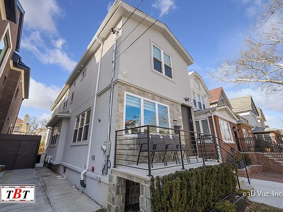 Beyond the dining room, you will find a gorgeous powder room. Next is the large gourmet eat-in kitchen worthy of any chef's dreams with an enormous square footage of cabinet space. High-end stainless steel appliances, granite countertops, and a marvelous marble backsplash. In the middle, you have a huge island with the third inserted stainless steel sink and built-in microwave and a warming drawer. Massive 60" over double ovens and a pot filler top off this dream kitchen. As big as it is, the plans in place include a big den through the back of the kitchen. Right up the stairs is your spacious primary suite with his and her closets, gorgeous in-suite bath with Jacuzzi, and stand-up shower with plans for a big walk-in closet. On the same floor, there are 2 more bedrooms, a full bath, and a dedicated laundry room. On the third floor, there's another bedroom with plans for 2 more bedrooms and 2 full baths and plumbing is in place. In the fully finished basement, there's an amazing playroom and a full bath and plans in place for 2 bedrooms. Plumbing in place for a Pesach kitchen. The backyard features a 2-floor garage with the top floor serving as an office.