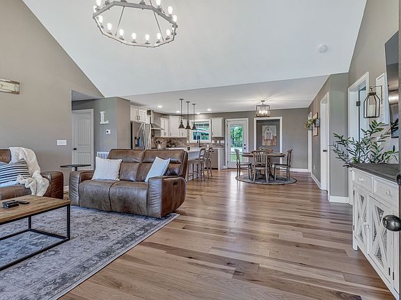 Nestled on five acres of picturesque land, this stunning country estate offers the ideal blend of tranquility and functionality. Built just two years ago, this residence is a perfect balance of modern convenience and rustic charm. The three-bedroom, two-bathroom home features an inviting open concept layout, highlighted by a spacious living, dining, and kitchen area adorned with brand new quartz countertops and stainless steel appliances. Step outside onto the screened porch, where you can savor the peaceful ambiance and take in the beauty of the surrounding wooded acreage. However, the true gem of this property is the custom-built 30x40 pole barn, complete with a sprawling covered porch perfect for entertaining or simply unwinding after a long day. Equipped with electric and featuring a versatile flex space with a bathroom, the pole barn offers endless possibilities. Whether you envision a serene country retreat, a homestead, or a haven for horses, this property is a dream!
