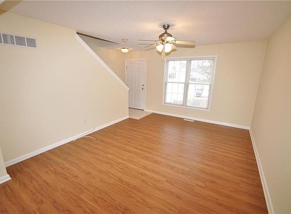 Move in condition 2 bedroom 2.5 bathroom townhome w/2 car garage & full basement. Fresh paint throughout, open floor plan w/new flooring on the main floor. Living room w/ceramic tile entry way & spacious breakfast room. Sliding glass door off breakfast rm walking out to patio & wonderful private, level lot w/trees. Neat & clean kitchen w/new smooth top stove, upgraded microwave, dishwasher, disposal & tile backsplash. Main floor laundry & bonus pantry. New carpet on stairs & entire 2nd floor. Master bedroom has full bathroom updated w/newer sink & vanity, new shower doors. Nicely sized 2nd bedroom w/double closet. Great loft space perfect for office/den area. 2nd full bath w/new shower doors. This property also has newer blinds, full basement great for storage, & sump pit and pump. Subdivision amenities include Pools, Lake, Walking Trails, Clubhouse, Soccer & Baseball Fields. Located at the end of a great court! USDA Eligible! No monthly HOA fee, 1 annual fee!