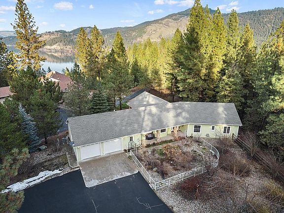 Immaculate single-level home with a Lake Roosevelt view near Kettle Falls. Lovely picture windows, recently updated primary bath, a formal dining room w/beautiful wood accents and a bay window overlooking the gated flower garden. There is an exquisite office, a grand gas-fireplace, tile and plank flooring in the main living areas plus gorgeous new carpeting in the bedrooms. The kitchen is well thought-out w/a walk-in pantry, center island, mini-bar w/sink and the appliances are included. The home features attractive glass doors and windows to the covered decks that look-out at the beautiful view. The oversized garage is impeccable w/a work-bench, the grounds are carefully landscaped w/a spk sys, fruit trees, flowers, shrubs and no grass in the yard to mow. There is a nice stand of groomed timber with plenty of room for a big shop and you will be delighted with the splendid asphalt-driveway from the Highway to the entry of the home.