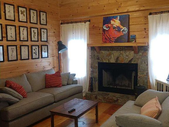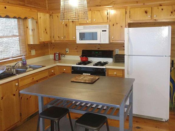 BEST DEAL for this 2 bedroom, 1 bath cabin mostly furnished. Newer stain, great condition inside and out, small kids loft, .54 acres, wood burning fireplace, upgraded AC thermostat and coded front door lock.