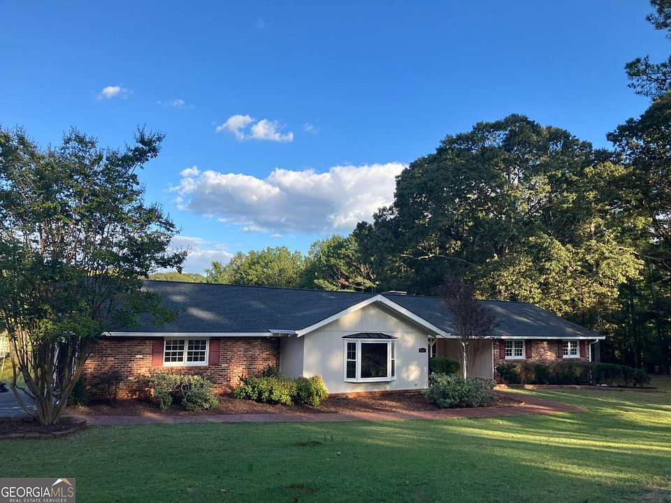Serene lakeside sanctuary on 5+ acres situated in a private enclave of lake homes. Relax in the bright sunroom overlooking the lake or take a dip in the pool, slide included! This 4 sided brick ranch boasts a huge family room with exposed beams and hardwood floors and separate den with masonry fireplace. Updated kitchen with new appliances plus updated HVAC with a geothermal system which significantly lowers power bills each month. The kitchen is equipped with plenty of cabinet space, a breakfast area, solid surface countertops, cooktop, double oven, and tile floors. Upgrades include fresh paint inside and out, New Landscaping and New pool liner (to be installed). The Master suite features a glass stall shower and plenty of counter space. Hall bath has whirlpool tub and tile floors. Enjoy the unmatched lakeside scenery from your own gazebo or soak up the sun around the fenced in pool area. The backyard, an amazing huge level yard surrounded by majestic trees, includes an outbuilding to personalize as you choose and a private dock on the lake. Seller is willing to install new liner or fill in the pool if purchaser does not require a pool. Great location and school districts. This Perfect Peaceful Lake Home awaits you to claim it as your own!