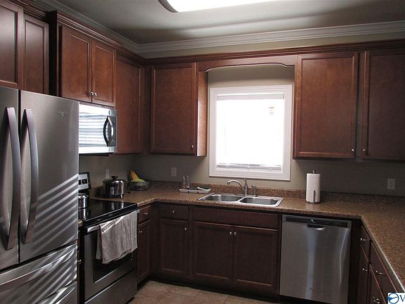 Handsome full brick home on 0.56 level lot in the county...Open vistas around home but still has neighbors. 10 minute drive to grocery stores including Super Walmart. Schools 10 minutes...Close to Huntsville and work areas. Home is full brick with vinyl siding so maintenance free! Interior of home is the Open plan concept with Great room, Dining Room and kitchen all together..plus has Wood floors and tile for ease of cleaning! Kitchen features a Large eating bar, Lots of cabinets/counterspace; plus tall ceilings with Crown Molding! Bedrooms same side of home with Master on backside of home for quiet in the evening! Large rooms, large closets as well! Clean and well maintained!