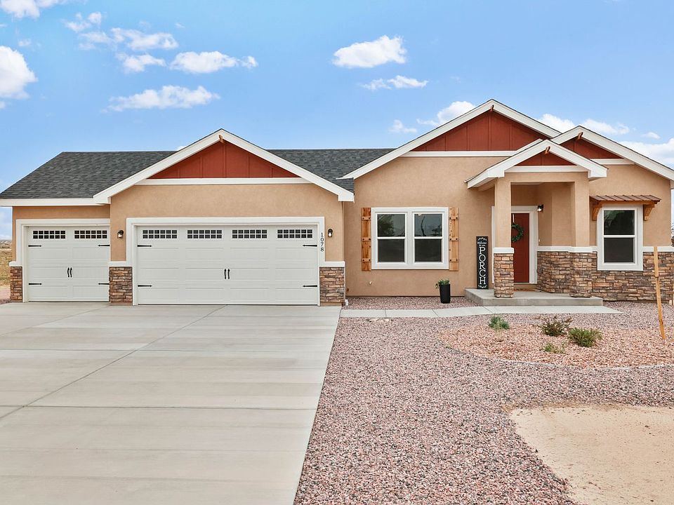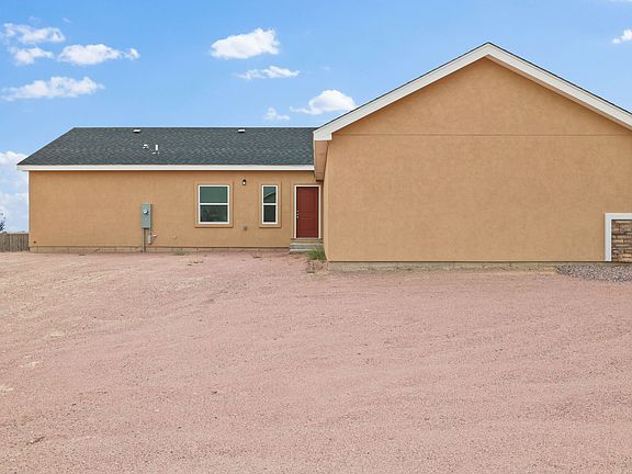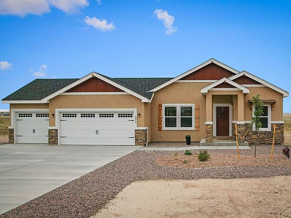 Simply sophisticated! This newly built ranch-style home is waiting for you to move in! As you enter the home, you will find a large Living room with carpeted floors that is open to the Dining area and Kitchen. The Dining area has a walk-out to the back patio. The Kitchen has a large center island, stainless steel appliances (minus a refrigerator), stunning brown cabinets, granite countertops, and a large pantry. Off of the entry is a private office or flex space. The Master Suite is very spacious with french doors, adjoins to a 4 pc Master Bath with an oversized walk-in shower, double vanity, and a walk-in closet. There are 2 other bedrooms, a full bathroom, and laundry area that leads into the garage. Everything is on the main level with no stairs! The 3 car attached has 2 openers. Whole house has electric mini splits for efficient heating/cooling. Located in beautiful Pueblo West on Acreage Lot located by Lake Pueblo and Close to Hiking and Biking Trails. This home is just waiting for your visit! Come see it today.