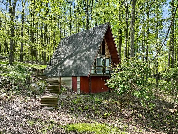 Get lost in all the charm of this Lakeview A-Frame home at Yough Lake in Addision Township. Inside you will find high ceilings creating an open, airy atmosphere with large windows allowing for natural light. The loft provides additional sleeping areas and views of the Lake. Enjoy a day on the lake and come back to the house for more fun on the front and back wooden decks which are the perfect outdoor entertaining space. Three additional lots on this property offer the perfect amount of privacy and room for an addition or new outbuilding for extra storage. One dock permit will convey with the property.