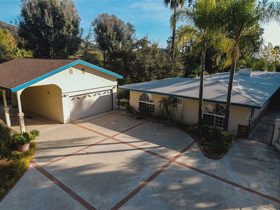 Gather around the gorgeous fireplace in the living room, creating a warm and inviting atmosphere for family and friends. Step outside onto the deck to soak in the breathtaking views and overlook the vast yard. Perfect for entertaining or simply enjoying the tranquility of the hills. There is a detached four-car garage with attached RV-covered parking. Solar panels line the garage roof.