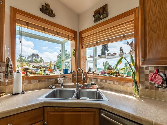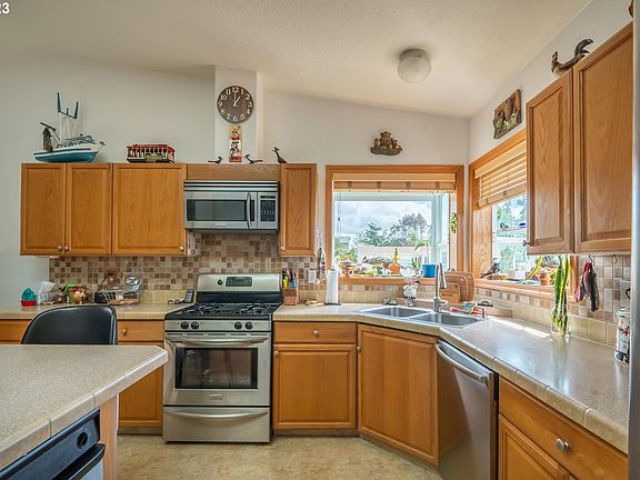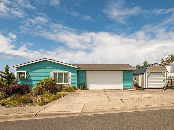 Ocean Views and Breathe in the Fresh Maritime Air at this 3 bedroom, 2 bath home! It is closely located to ocean beaches an has views of the bay and ocean from the kitchen, dining and living room. The manufactured ranch style home has an open floor plan that includes a formal living room and dining room on this 1782 square foot house. The home has a natural gas range, stainless steel appliances and gas dryer. Get cozy in the sunroom and enjoy watching storms roll in and/or soak in the Jacuzzi tub after. The backyard is fenced and has a low maintenance xeriscaping. School and shopping is nearby. In addition, there is RV parking on this dead end street. Shed in driveway not included. Gas Dryer included. Natural Gas Stove.
