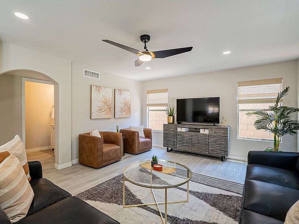 Welcome to this exquisite oasis in the heart of Gilbert. This impeccably designed and professionally decorated home offers the ideal escape for families or groups seeking a luxurious and rejuvenating retreat. Featuring 4 spacious bedrooms and 2.5 bathrooms, this home comfortably accommodates 7 guests. The chef's kitchen boasts top-of-the-line appliances and ample counter space for culinary adventures. For entertainment, enjoy a game of foosball or air hockey, or take a refreshing dip in the private pool. Whatever your pleasure, this home offers a perfect blend of relaxation and luxury for your stay in Gilbert. The pool is not heated.