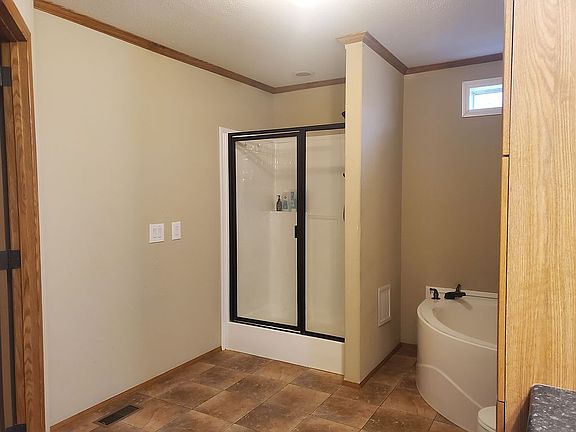 This is a double-wide that MUST BE MOVED to the location of your choice. There are four bedrooms and two baths. The center is open and contains the living room, kitchen, and dining nook. There is a laundry room that has an exterior door. There are two walk-in closets.