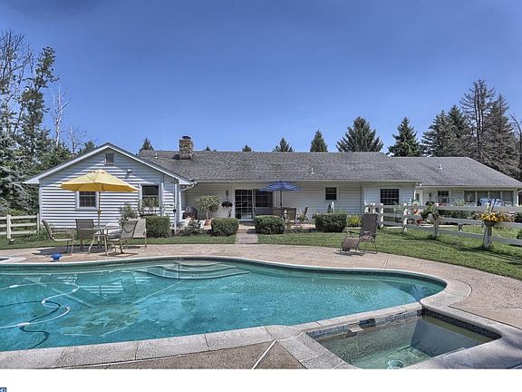 This home is a lovely 2850' stone/vinyl ranch located on a 2.80 acre country lot bordered by trees for privacy. This home boasts a newly remodeled** 42'x17' Anthony in-ground pool with southern exposure, as well as new vinyl fencing. Walk through the glass double front door entry onto a flagstone foyer and you'll see the spacious open floor plan. The formal living and dining rooms have beautiful engineered hardwood flooring. You'll love cooking and entertaining in the huge freshly painted eat-in kitchen featuring Corian counter tops, tiled back splash, center island with Jenn-Air stove top, peninsula eating bar; plus, all appliances are included. Look beyond the kitchen into the family room featuring a full wall stone fireplace and sliding glass doors which exit onto a cement patio overlooking the pool. The huge master suite boasts a remodeled bath and 3 closets. The two additional bedrooms are serviced by a full 3-piece tiled bath. There is also a main level laundry room, powder room and an office/sun room. Other features include a 2-car garage, very spacious partially finished basement with a large storage area, new windows and newer mechanicals. You'll have easy access to all directions and shopping.
