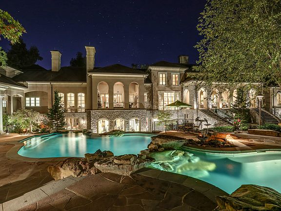 Exquisite Estate Home in coveted gated community on over 4.5 acres! Amazing private outdoor oasis includes pool, spa, waterfall, fountain, outdoor kitchen plus serene screened porch w fireplace. Immaculate home boasts abundant entertainment & living spaces including a theater, bowling alley, 2 offices, fitness room, meditation room & elevator