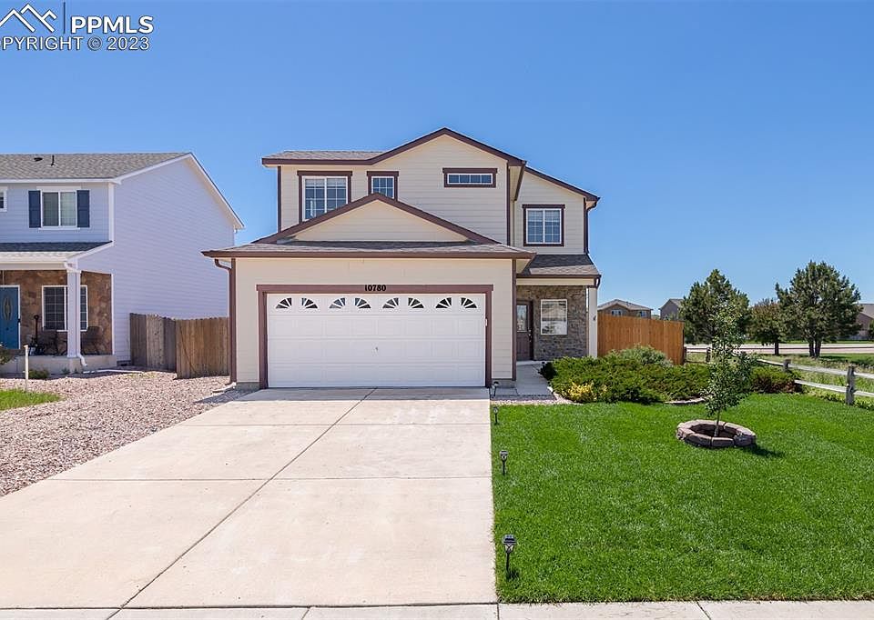 Welcome to 10780 Deer Meadow Circle! This stunning 3-bedrooms, 3-bathrooms home offers spaciousness, modern design, & a fantastic location. Boasting 1547 square feet of living space & a 2-car garage. As you step inside, you'll immediately be captivated by the open floor plan & abundant natural light that fills the home. The main level features a generous living area, perfect for hosting gatherings.The well-appointed kitchen is a chef's dream, complete with sleek countertops, stainless steel appliances, & a convenient center island. The upper level is a haven of relaxation, with 3 bedrooms offering plenty of space for a growing family or accommodating guests. The master suite is a true retreat, featuring a spacious layout, a luxurious en-suite bathroom with dual sinks, a soaking tub, & a separate shower. There is also a full bathroom on this level, adding convenience & functionality. Outside, the property is a haven for outdoor enthusiasts. The expansive backyard offers a serene retreat, perfect for enjoying Colorado's beautiful weather. Whether you're hosting barbecues on the patio, playing catch on the lush lawn, or simply relaxing & taking it all in, this backyard is sure to impress. Located in a desirable neighborhood, this home provides easy access to schools, shopping, dining, & entertainment options. With its close proximity to major highways, commuting to Military bases & downtown Colorado Springs is a breeze. Don't miss this opportunity to make this your new home. Schedule a showing today & experience the perfect combination of comfort, style, & convenience in this exceptional property. **Note that the whole house has been re-painted this mid-June, the appliances are brand new, days old, as well as the landscaping.**