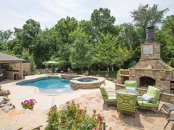 Call Debra Adamek 918-695-4945. Luxury estate on greenbelt in Legends near Cedar Ridge Country Club in Bixby North Elementary District. Outstanding interior amenities & incredible outdoor living. 5229 sf on .3+ acre lot has 5 bedrooms, 4 full & 2 half baths, game room, theater & music room up. 1st floor master plus guest suites down. 3 bedrooms up. Brand new outdoor entertainment package includes heated saltwater lagoon pool, spa & fountains by Vivian Pools. Cabana has wet bar, bath & cool mist system. Cabana & covered patio media wired by Video Revolution. Covered patio has outdoor kitchen. Decorative iron fence with gate allows full view & use of manicured greenbelt. Outdoor fireplace has gathering area.