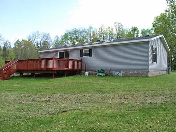 Well maintained 2 bedroom, 2 bathroom home on 26 2/3 secluded acres 3.5 miles west of Crandon. The home is 15 years old with a detached and insulated 24 x 40 3 car garage built in 2004 with rafter storage. Also featured is a wrap around deck and front porch, new updates throughout the home, energy efficient Hearth Soap Stone wood burning stove and central air conditioning. There is a 32 x 40 steel pole building for extra storage. This is a must see property for wildlife lovers and/or those who desire privacy.