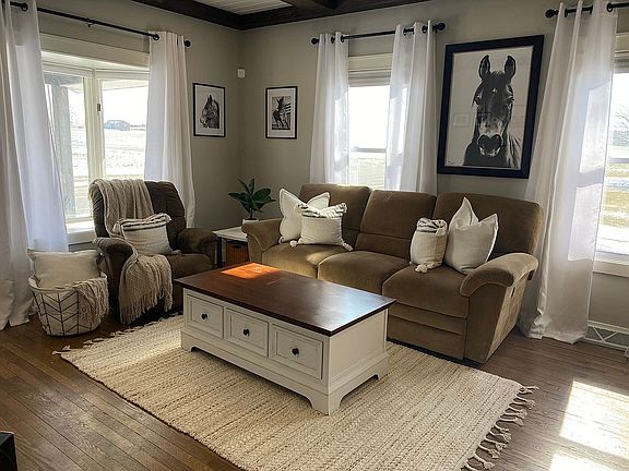 This beautiful newly remodeled home, has concrete kitchen counter tops and hardwood floors on main level. Upstairs has new laminate flooring, 2 bedrooms, laundry and bathroom. All appliances are almost new and are included. The furnace and AC are only 2 years old. Main floor has 2 bedrooms and bathroom. The roof and siding are 4 years old. There is an adorable covered front porch for relaxation or entertainment. Large pole barn with two garage door entrances.