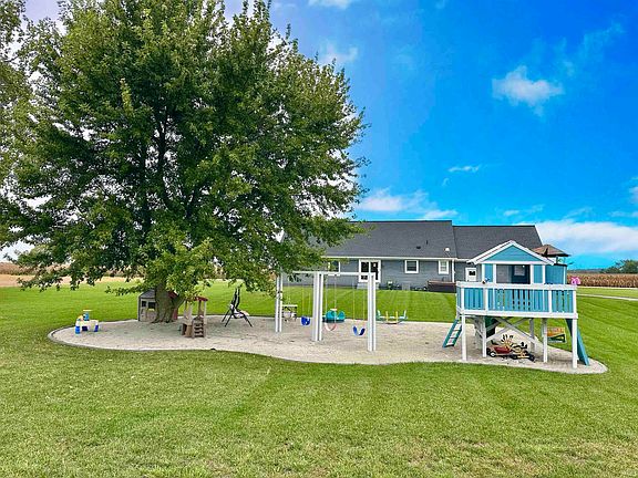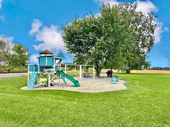 Enjoy coming home to your own slice of paradise! A stunning and peaceful property that's nearly 1.5 acres, over 3400 sq ft! The winding drive leads your guests to the highly manicured landscape and sidewalks that will bring you a remarkable front porch that runs the length of the home! Enjoy the fans on those hot summer days while sitting in your rocking chair! This home is filled with welcoming touches! Step into the large living room that has shiplap on the ceiling and a super cozy gas fireplace, the open concept kitchen is designed with function and style in mind, ready for entertaining and cooking! There are 5 expansive bedrooms with ample closet space and gorgeous country views from every window, 3 Full bathrooms each finished with modern detail, and the 5th bedroom could serve as a bonus media room to watch your favorite movies. The basement is a massive area for storage, playrooms and safe place in inclemental weather. Stepping out the kitchen's sliding doors is like stepping into a backyard dream with mature trees and lush green foliage! For the young ones, there is an entire playground!!! For the adults there is a luxurious hot tub! The pole barn serves as a hobby shop/small business and there is a covered side patio entrance for customers, an area for a showroom that is 19x10, a work space that is 52x38, the private office is 11x10, second level storage 29x10, half bath, 12 inch concrete in the largest bay, two overhead doors, insulated, heat and air conditioned, with electricity and water as well. Note that the home is sided with smart siding! The possibilities here are endless with so much to offer everyone!