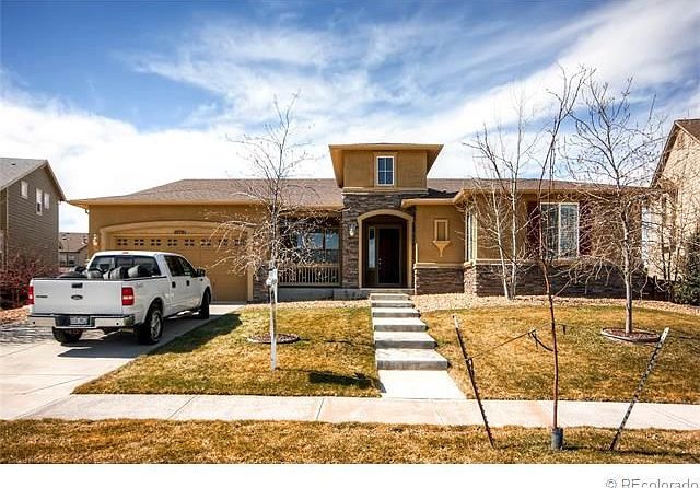 WOW...Now on the market! Largest, most popular ranch style plan in this community offers an open floor plan with spacious rooms and tall ceilings. The floor plan flows easily from the formal dining room to the kitchen and family room areas to the main level master suite. Den/study location off the entry provides privacy from the rest of the house. Entertaining is a delight with high-end kitchen appliances and finishes and access to a large outdoor pavilion off the rear patio. The backyard is one of the largest in Reunion, at nearly 1/2 acre, and has been nicely landscaped. Some city light and mountain views are a bonus. The over-sized garage easily accommodates three cars. The full size basement with rough-in plumbing is a blank canvas for whatever your imagination and family can dream it to be. A ranch style home like this with its square footage, utility, finishes, and extraordinary pavilion and yard seldom presents itself. Schedule your showing today!