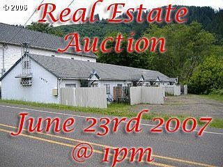 Real Estate Public Auction to be held on June 23rd at 1pm Preview and Open House @ 10am on the day of the auction. Four - two bedroom, 1 bathroom apartments. Near Mapleton school. Approx. 16 miles from the beautiful Oregon Coast. Great Income producing property, currently renting for $450 month.