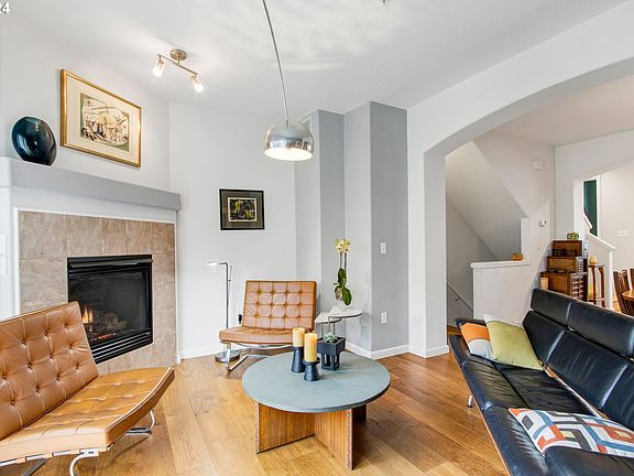 CharmingTownhome in Canterbury Heights! This impeccably cared for property has an open-concept layout that effortlessly links the kitchen, living room and dining spaces. Unwind in the spacious living room, complete with gorgeous engineered oak floors, a cozy fireplace w/fan and a slider that opens to the back deck with views of trees and green space. The roomy light and bright kitchen is well laid out and furnished with included stainless steel appliances. The primary bedroom features a full bath and generous closet space with Elfa custom closets. Rounding out the upper level is a spacious second bedroom, full hall bath, linen closet and convenient laundry closet with stackable washer and dryer. Additionally, the community includes access to a private nature trail, providing residents with outdoor space to enjoy! Recent upgrades to the home include - Engineered oak hardwood on main floor and stairs (2017) Luxury vinyl plank on second floor and stairs (2020). New Gas Furnace and AC (2023) GE gas range and over range microwave (2019).