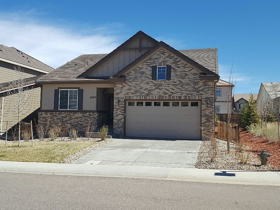 Visit Vestra-PM.com for more information and a virtual tour! Charming Ranch style home with top notch finishes in a highly sought after location! Gleaming hardwood floors populate the main areas of the upper level which features a gourmet kitchen complete with granite slab countertops 42" cabinets SS Appliances (gas range) and a beautiful tile backsplash. Just off the kitchen is the spacious family room with a tile fireplace. The master suite features a beautiful 5 piece master bath as well as a generous walk-in closet. Laundry room is also conveniently located on the main level! The finished basement is home to the huge living room along with two additional bedrooms a full bath and a ton of unfinished space for your storage needs. The landscape enjoys the best of both worlds being almost very low maintenance but also enjoys a huge grass area directly adjacent which is maintained by the HOA! Convenient & quick access to both I-25 and E470 via low traffic back roads! Schedule a showing today this home will not last! 6- 12 month lease terms available. Pets on case by case basis, additional terms may be required on approval. Section 8 is not accepted on this property. Complete background check applies for each potential occupant over the age of 18.