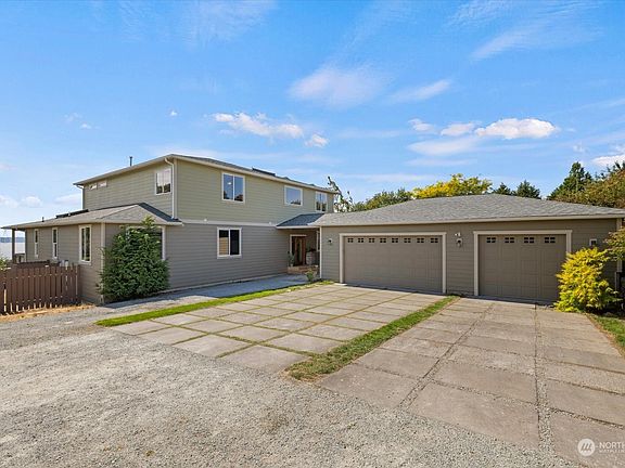 Perched above The Arroyos on Marine View Drive in West Seattle - this 2009 custom home sits on a large corner lot that offers sweeping views of the Sound from nearly every room. You are met with soaring ceilings showcasing a light filled open kitchen & living space perfect for entertaining w/ SS appliances, gas fireplace, & a sprawling media room. Main floor primary boasts a spa-like bath & easy laundry access through your walk-in closet. Upstairs you’ll find office space w/ views, a second primary suite, plus two large additional bedrooms. Enjoy gorgeous sunsets on the covered deck overlooking the fully fenced yard & fruit trees. Exterior is enhanced by new paint, 3 car garage, EV ready, solar, RV/Boat parking, & potential to add an ADU.