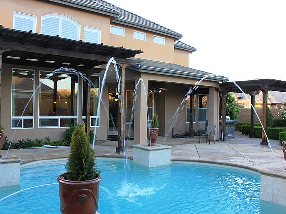 The splendid Fugman home with so much charm sits on a large corner lot in Bellamontagna! This former model home features distressed hickory planked wood floors, crown moldings,hand troweled finishes and custom wood trims and paint. Other Features include custom audio system, granite kitchen counters, viking appliances, elastomeric paint, 2-fireplaces, elegant plumbing and lighting fixtures. There is a possible 2-master suite option, one complete with Jacuzzi tub. The backyard landscape offers beautiful pool with water feature, built in BBQ, dog run, engineered tall concrete fence. Call today for a private showing. This is your new home!