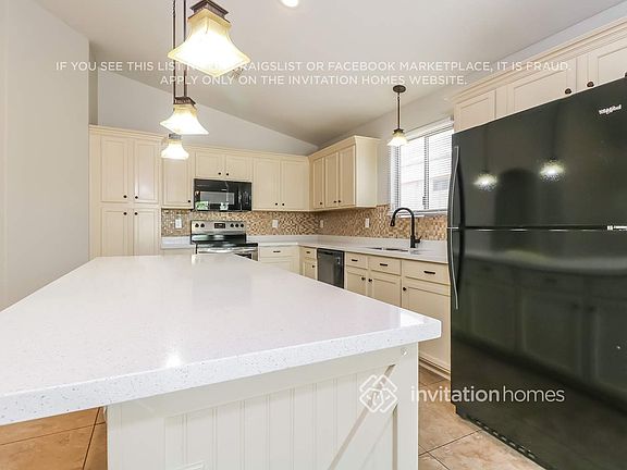 Home Features and Amenities: Air Conditioning, Fenced Yard, Garage, Kitchen Island, Long Lease Terms, Luxury Vinyl Plank, Patio, Pet Friendly, Quartz Countertops, Recessed Lighting, Smart Home, Tile, W/D Hookups, and professionally managed by Invitation Homes.