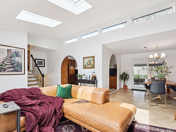 Tucked beneath the mature trees of the sought-after Allendale neighborhood, this lovingly restored gem blends timeless charm with modern updates. Walk through the front door to experience the warmth of a space curated to preserve the home’s original character while enhancing its comfort. Sunlight filters through all-new energy-efficient windows—including skylights—casting light on the herringbone floors that carry you from the cozy living room, through arched doorways, and into the heart of the home. The custom kitchen is a showstopper—crafted with stained inset maple cabinetry, warm brass finishes, honed quartz countertops, stunning marble checkerboard floors, and smart new appliances including an induction stovetop. A built-in banquette anchors the dining space, where laughter lingers long after dinner is over. Slide open the glass doors and step onto a covered porch designed for memory-making—complete with an outdoor movie setup, deck, campfire pit, and a garden. The yard? It’s one of the largest in the neighborhood—professionally landscaped and perfect for hosting summer gatherings. Back inside, retreat to the main bedroom suite where a moody mural wall meets arched French doors that open to a jaw-dropping spa-like wet room featuring a freestanding tub. Downstairs, the fully renovated basement offers a quiet bedroom, a cozy movie night haven, and a flexible bonus room ready for play, work, or rest. Walk to Arvada West High School, the Ralston Trail, Stenger Sports Complex, a European bakery, and the brand-new Arvada Beer Garden. Hop on your bike and you’re 10 minutes from the light rail. Olde Town Arvada is a 7-minute drive away and you can see the mountains from your front window. Homes like this don’t come up often—especially not with a yard this large, a true primary suite, and updates made to last.