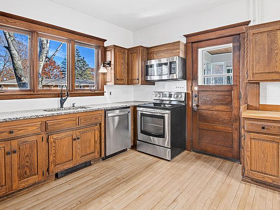 This beautiful and historic 1916 Chisago City home is for sale! Home features a unique kitchen with granite countertops, stainless steel appliances, a real butcher block built in, and a walk-in pantry. Original wood floors on the first and second level have all been professionally refinished and look amazing. Custom wood work from long ago is definitely a main attraction in this house. Wood burning stove fireplace and large dining room both on the main level. 3 bedrooms on the same floor make this a great home for your family! Finished basement has been completely updated, wait until you see it! New large bathroom, new floors, all bright and efficient with built in LED lighting. This house has a great balance of character with modern touches. 2 gigantic porches! The garage is large and has walk up storage with a ton of space for full height storage. Beautiful and large yard. This is a must see.