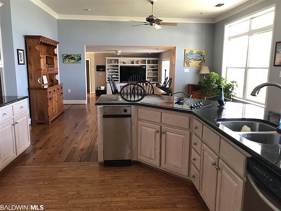 Waterfront home located in the heart of Fairhope! One hundred front feet on Mobile Bay in the Sandy Beach subdivision offering three large bedrooms and three full baths. Mobile Bay has sandy bottom here! Brand new bulkhead, lots of recent yard work including new sod so there's plenty of room for football, croquet or that large gathering you've been wanting to have! Heart of pine flooring, crown molding, a wall of glass front cabinets in the kitchen. Downdraft cooktop is strategically located so you can watch the dolphins play while you cook dinner!!! Granite and stainless in kitchen as well as garbage disposal and full size pantry! New elevation inf file...Flood Zone AE.